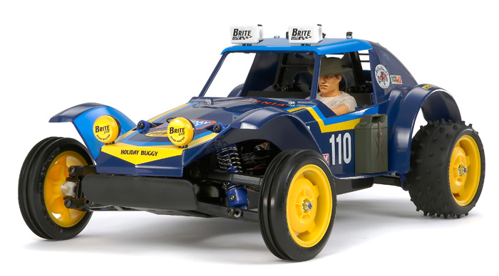 【 Relive The Fun! 】 The 2WD R/C off-road car Holiday Buggy made its debut in 1980 and attracted many R/C fans due to its sprightly handling characteristics. Now, Tamiya is proud to release the updated Holiday Buggy (2010), which comes mounted on the proven DT-02 chassis. It features a 4-wheel double wishbone suspension, and its simple, durable construction makes for easy assembly. The durable soft resin body features a pre-painted driver figure wearing a cowboy hat for enhanced realism.