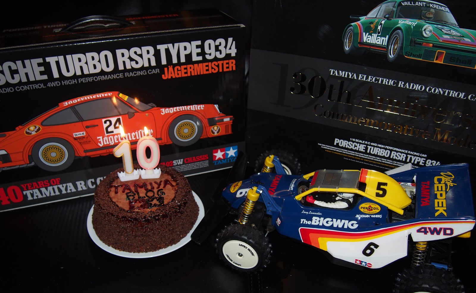 Since Tamiya had released their Bigwig (#58057) in 1986 to celebrate their 10th anniversary of RC, it couldn’t miss in our little 10 years celebration, as also a little self made cake (please excuse our poor cake decorating abilities, thankfully our Tamiya builds and reports are bit better). The biggest change though is the new responsive design of our website which we hope you will find easier to read, also at mobile devices.