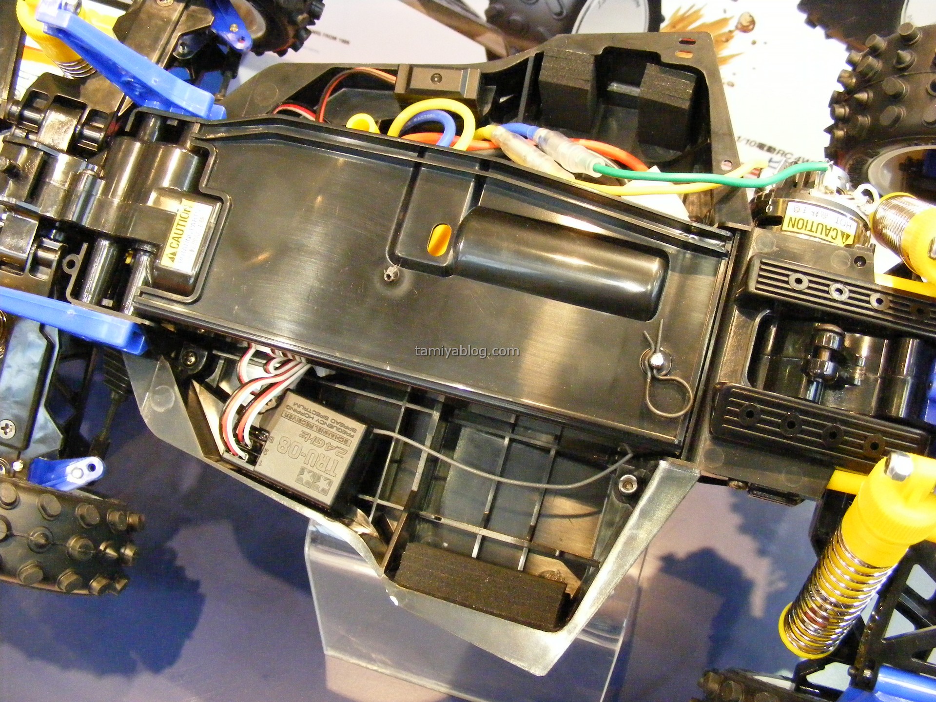 - Front and rear shock towers sit lower than previous model TRF machines. This feature reduces the center of gravity and allows Tamiya fans to use Tamiya low nose sports car body sets.