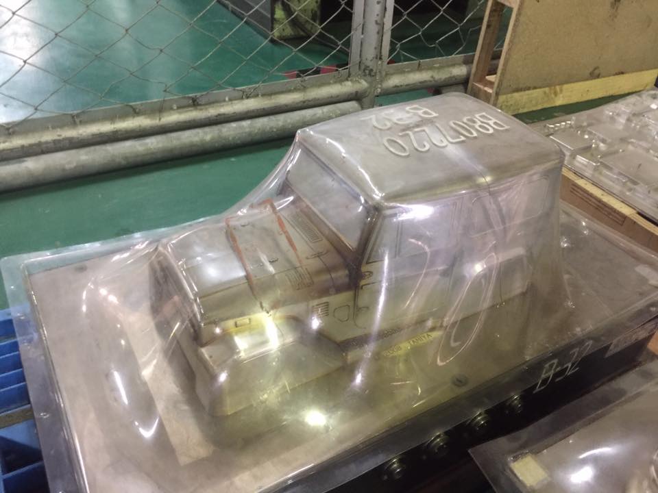 Interestingly, a few of them show a prototype of the Tamiya 58646 RC 1/18 Konghead 6X6 G6-01 as well the production of its Polycarbonate body and some pre-sale sample chassis: