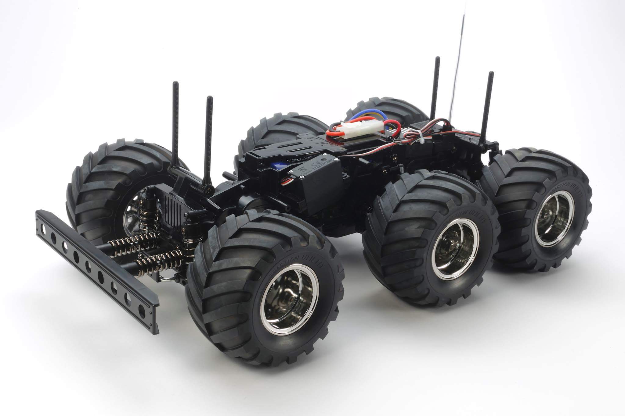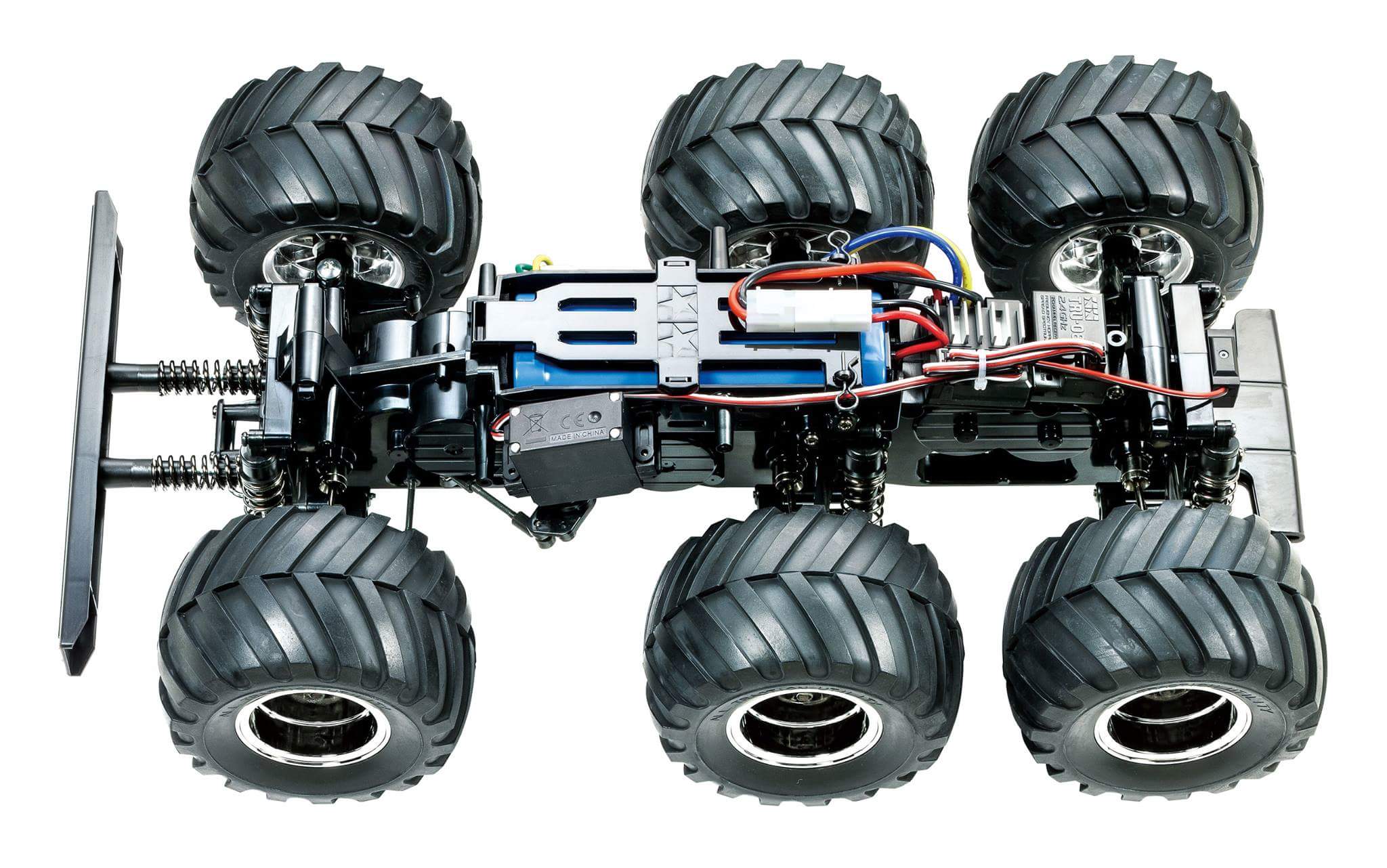 · The 6WD chassis employs 3 differential gears to transmit power from the front-center-mounted motor to all of the model’s wheels. These differentials are encased in the durable main chassis.