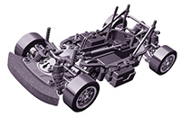 High performance new design M chassis pursuing light traveling performance unique to front wheel drive and also pursuing maintenance. Adopt upper and lower split monocoque frames to ensure high rigidity. Replacement of the differential gear reduces disassembly around the foot as much as possible, accessible from the bottom. The circumference is independent of the double wishbone equipped with CVA damper. It is a special item which made long arm and linkage, and it is also characterized by wide setting width. ★ Drive system is full bearing specification. Oil-filled type gear differential, universal shaft, high torque servo saver etc. are standard equipment. ★ 225 mm, 239 mm, two types of wheel base can be selected. ※ The picture is an image under development. It is different from product specification.