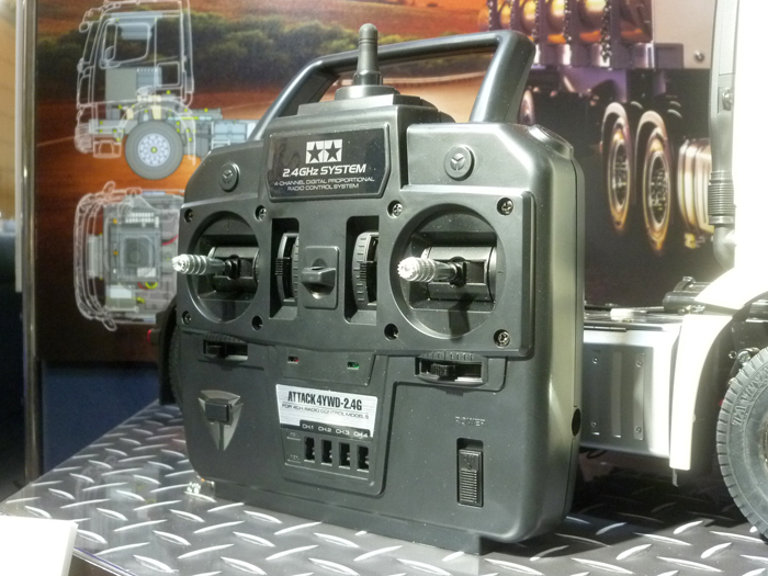 ★ Length 529 mm. ★ You can enjoy gear change while driving with 3 speed transmission. ★ Stick type 4 channel transmitter, running battery and charger set as well. ★ Trailer (sold separately) can be connected. ※ 4 ch apo, battery and charger set as well.