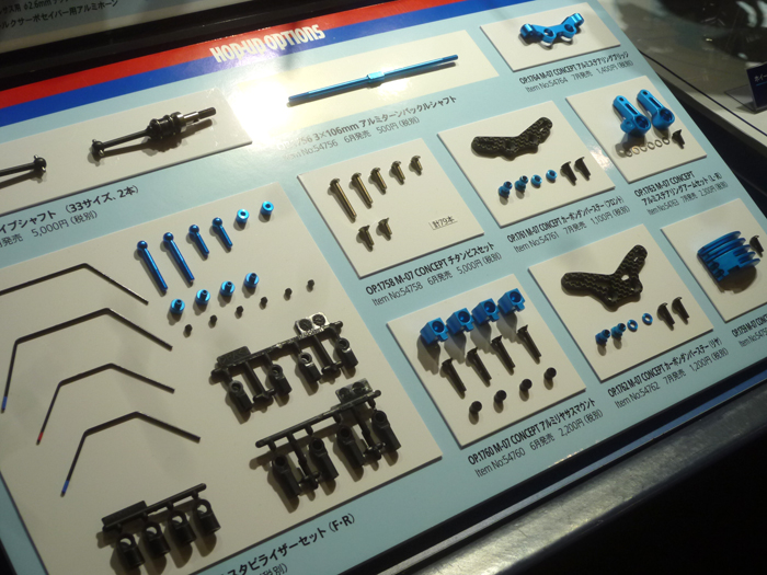 M – 07 CONCEPT chassis kit High performance new design M chassis pursuing light traveling performance unique to front wheel drive and also pursuing maintenance. Adopt upper and lower split monocoque frames to ensure high rigidity. Replacement of the differential gear reduces disassembly around the foot as much as possible, accessible from the bottom. The circumference is independent of the double wishbone equipped with CVA damper. It is a special item which made long arm and linkage, and it is also characterized by a wide setting width.