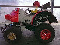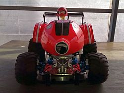 This is a model that extends the pleasures of running a high rough road running performance and comical finish unique to 6 wheel drive. Adopting a monocoque frame with a slim shape but high strength, use gear for power transmission. The motor is mounted behind the front axle, and the gear transmits the power to the front shaft and the second shaft. Furthermore, the gear train 6WD system which transmits power from the 2nd axis to the 3rd axis also with gears. You do not choose a place to demonstrate outstanding driving power and run.