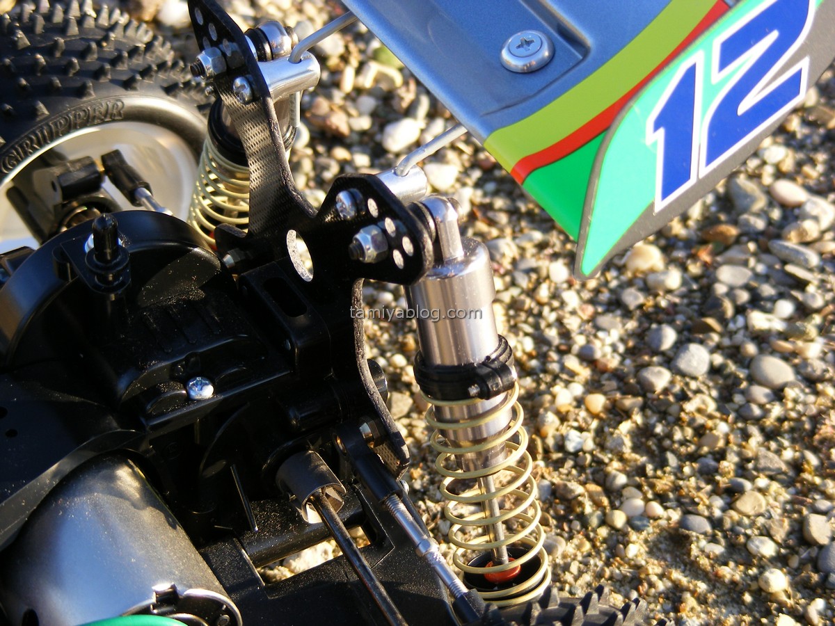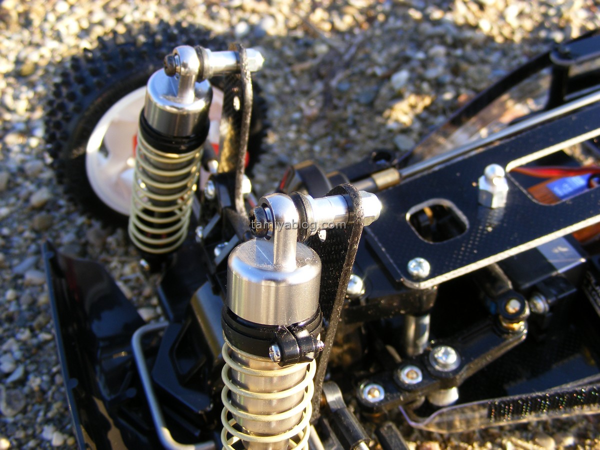 As a regular reader, you may know that we lik alternate paintschemes. The Top Force is no exception here. This time, our choice felt for the relatively new Tamiya PS-63 Bright Gun Metal. We like it a lot, and it suits the colour of the Tamiya High Cap dampers very well.