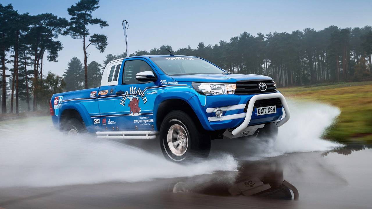 American kids weren’t the only ones who went nuts for Tamiya’s plastic models and radio-controlled cars, buggies, and trucks during the Reagan administration. The youth in Thatcherite Britain had quite a soft spot for the things, too. While the Hilux moniker has long ago fallen into disuse in the USA—its role now filled by the Tacoma—British ’Yota enthusiasts still do their four-wheeling Hilux style. And in a goofy genius move, Toyota cribbed cues from the Bruiser that was introduced in 1985, upsized them, and applied them to the modern truck. To wit, the thing features a to-scale antenna pole mounted in the bed, wound in a loose spiral with cable, just as an RC car’s receiver wire would be wrapped around the little car’s aerial rod.