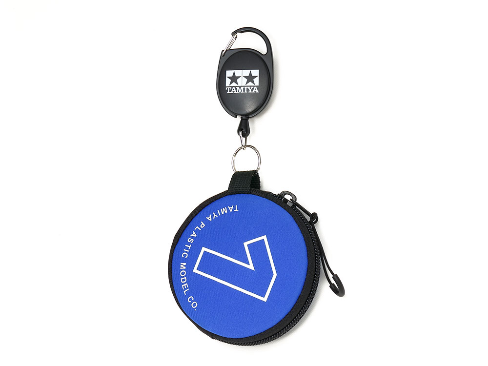 It is a holder with a stretchable string that is ideal for attaching key chains and the like. Body made of ABS resin, hook part made of metal. It is also possible to attach it to a belt or a bag using a hook, a pocket etc with a clip on the back of the main body. The combination with an optional coin case is the best match. I designed Tamiya’s star mark and logo in white in the body of black color. It is a fashionable item as a little accessory.