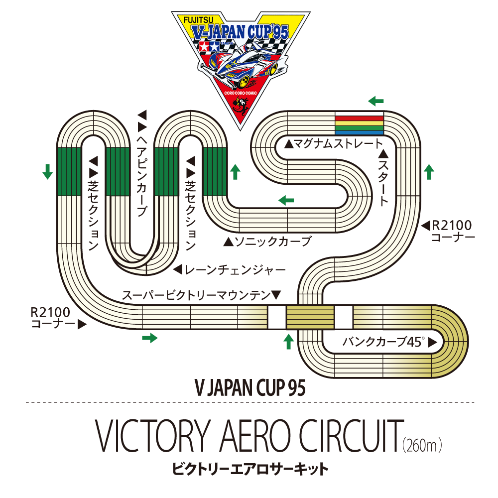 “Fujitsu Battery Offered Mini 4WD Japan Cup 2018” started from the 16th Tokyo Convention and is currently visiting 14 venues / 17 tournaments nationwide until the October championship battle. The 2018 course is a high-speed circuit that arranged the 1988 Japan Cup · 1st official course “Ultra Great Dash Circuit” to the contemporary specification with the concept of return to origin. “Classical Circuit 2018” with a total length of 169.8 meters with a number of sections appeared in the venues nationwide. Let’s join this year’s Japan Cup without success!