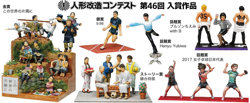 The doll remodeling contest is a model contest using a “1/35 Military Miniature Series” 5 cm tall soldier doll. From a simple remodeling just changing a pose or a small item to a completely different person or character, a technical person who transforms it into a character or a character, an idea of ​​a game with a fun thought, a soldier doll is the source anyway Even a bad work OK! If you devise not only the doll but also the backdrop on the table, you can emphasize the movement of the doll or let the story feel.