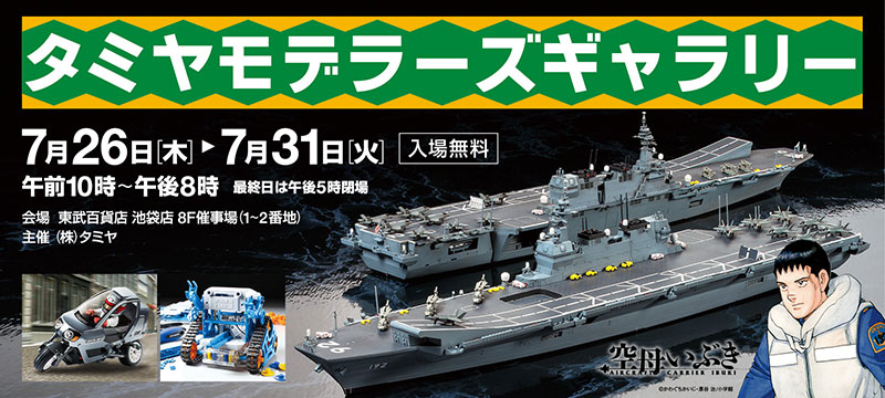 A model that has motifs of every era from long ago to the present age. It is fascinating that you can see the past and present model on the desk at the same time and can create the future you can draw stereoscopically. Tamiya Modeler’s Gallery will be held this year with an exhibition full of such models’ charm. This time attention is the exhibition including the model of the cartoon “aircraft carrier IBUKI” realized with collaboration with Shogakkan “Big comic”. Besides this, scaling model, mini 4WD and RC model are plentiful. In addition, there are plenty of events such as mini 4WD construction classroom, sweets decoration production experience, handling experience of topic three wheel RC car “Dancing Rider”. I can spend a full day of fun.