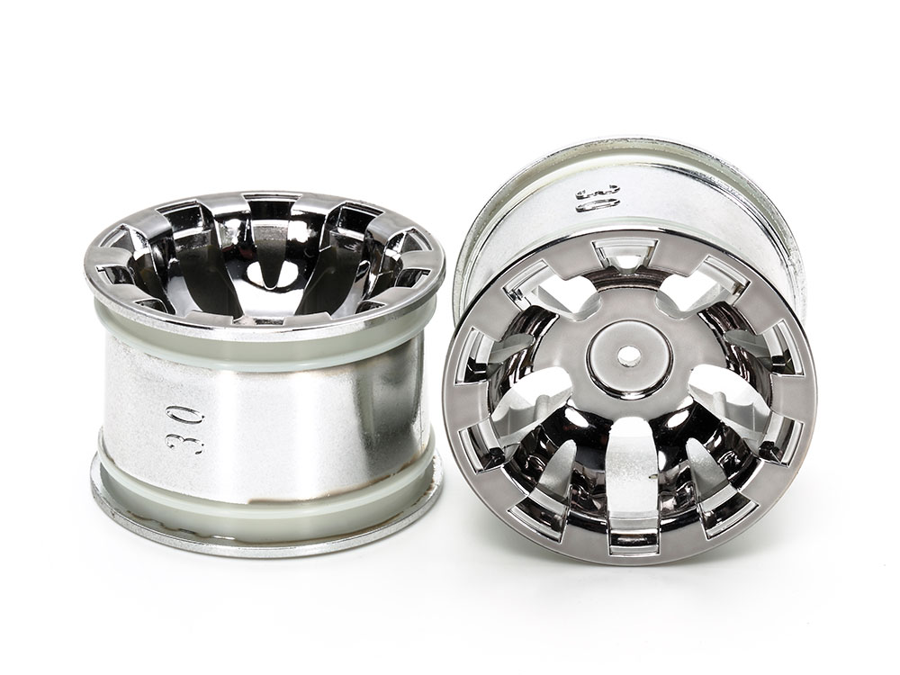 54831 T3-01 Wheels for Rear Wide Semi-Slick Tires (Chrome Plated, 2pcs.)