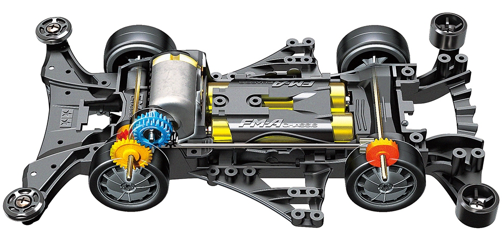 – FM – A chassis is a new color olive gray, large diameter narrow V – spoke wheel wearing black large diameter barrel tire is also a new color purple.