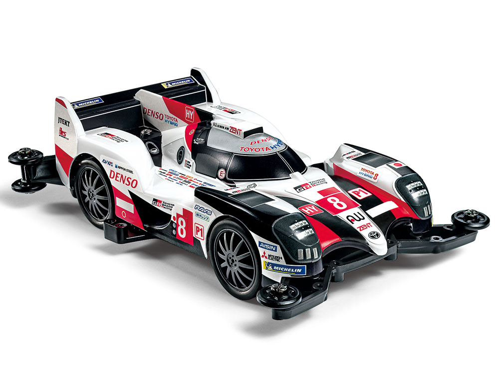This is a mini 4WD of Toyota Gazoo Racing TS050 HYBRID that won the traditional 24-hour race held in June every year in 2018 and 2019 and won the series championship of the World Endurance Championship. Realistic modeling of aerodynamic style. Marking is prepared with a sticker and finished on both No. 7 and No. 8 cars. The chassis adopts MA with excellent driving efficiency.