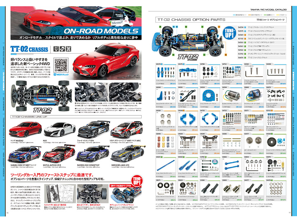 - The standard touring car that adopts the TT-02 chassis is also listed with representative OP models and main OP parts. Customize your machine to make your ride even more interesting.