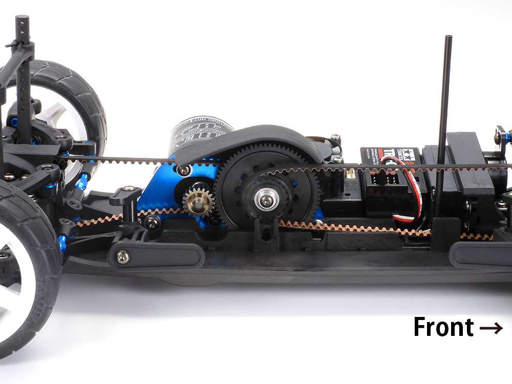 - ★With spur gear ahead of motor, the chassis gives a stable drive, and belts are closer in length to facilitate minimal drive loss.