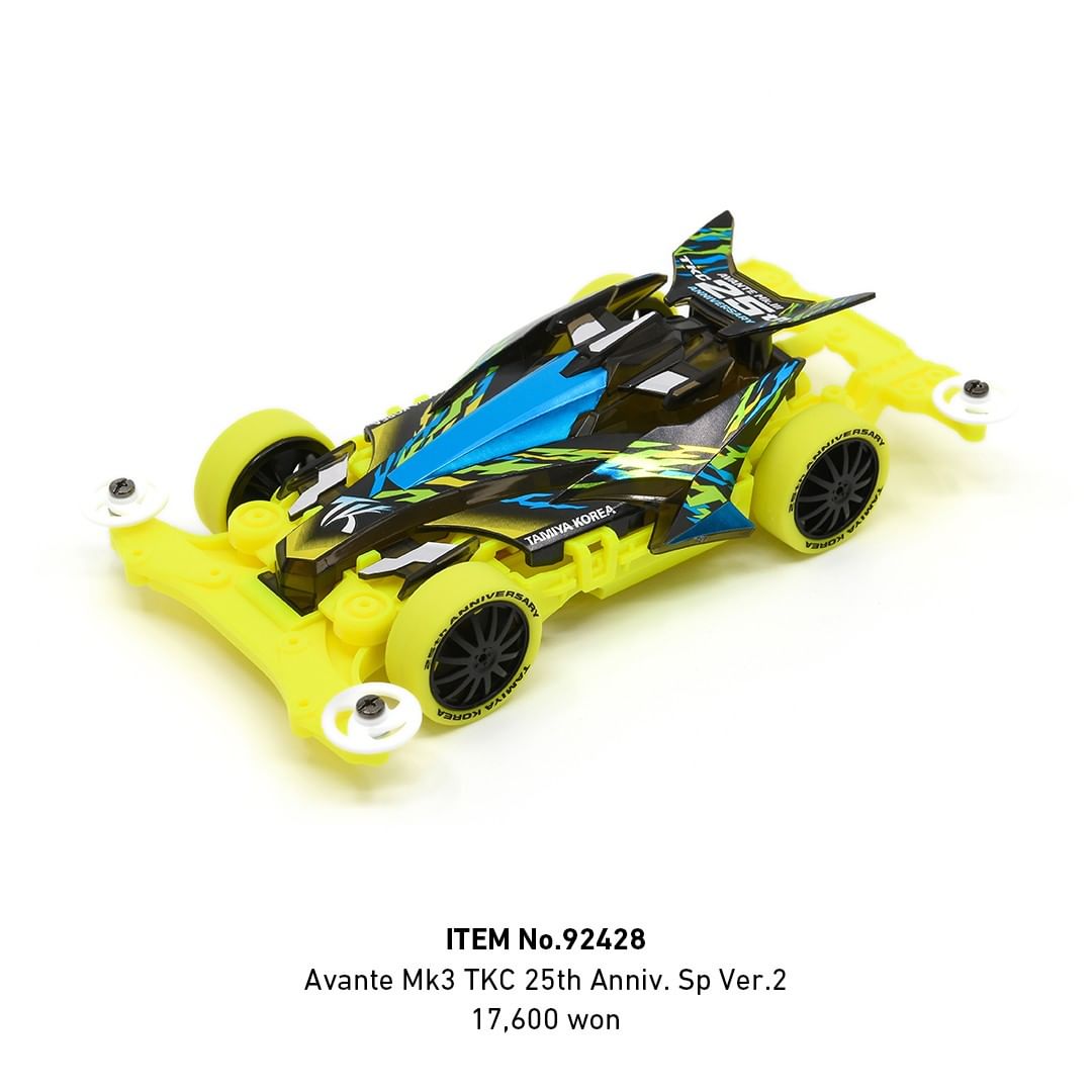 A plastic model assembly kit for high-performance racers that uses shaft-driven four-wheel drive. Road Spirit is a machine driven by Mota Kudo, the main character of “MINI 4 KING”, a manga serialized in CoroCoro Comic. The white-collar body consists of two parts, a front part that is narrowed down toward the rear and a roof. The sharp styling that is held low gives a sense of speed. Even more noteworthy are the road spirit parts, which are important items in the story. The front stabilizer protruding like a corner, the rear brake attached to the underside of the machine, and the rear height roller, which is characterized by its thick shape, add stability at high speeds. The powerful silhouette and the beautiful texture of clear blue green are also attractive. And the chassis adopts VZ which is lightweight and compact and suitable for actual battle. Dish type wheels equipped with large diameter slick tires are easy to apply force when inserting the shaft. The red graphic that shines in white, the logo of the machine name, etc. are expressed with metallic stickers.