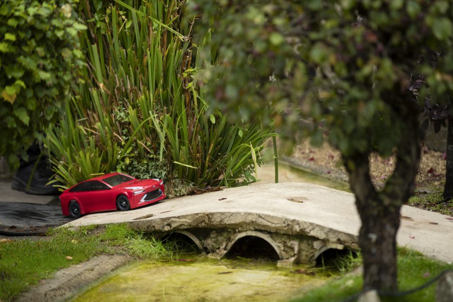 In order to create our one-off Mini Mirai, we enlisted help from Bramble Energy, a company specialising in miniature hydrogen applications, and the Tamiya model company. For the body, Tamiya used their expertise to create a 1/10 scale replica of the new Mirai hydrogen saloon with one of Tamiya’s popular TT-02 RC cars used as the starting point. In order to achieve a striking resemblance to the full-sized Mirai saloon, every inch of the vehicle was surveyed, with even the colour of the Mini Mirai (Scarlet Flare) being an exact replica of the real car.