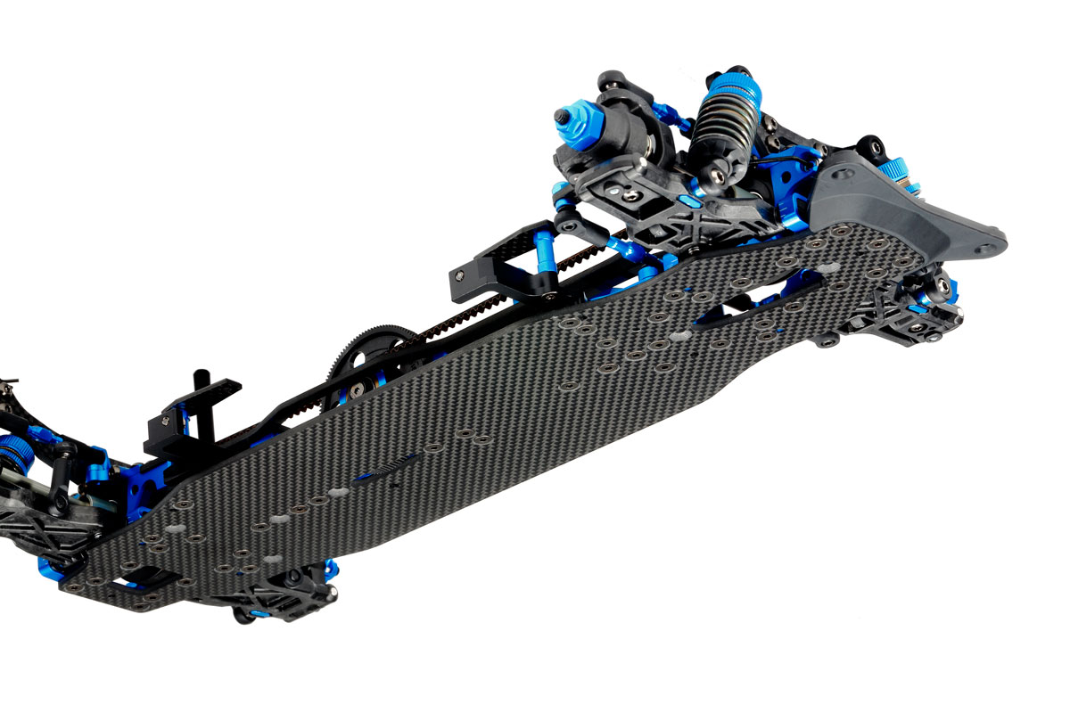 The model is based upon the gear-driven 4WD GF-01FT chassis featuring a monocoque frame with power provided by the centrally-positioned motor via front/rear differential gears.