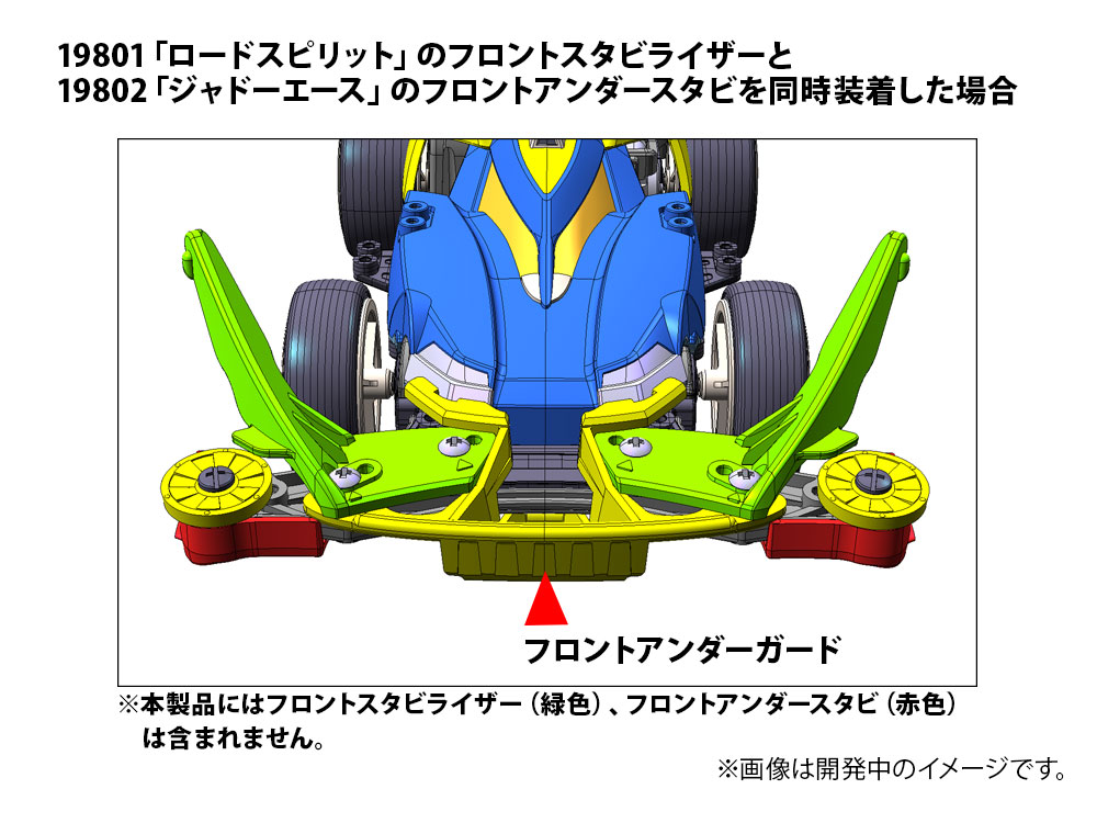 - [Front under guard] While reinforcing the front bumper, it improves driving stability by contacting the road surface on uphill roads such as lane changes and functioning as a brake. The front stabilizer of Road Spirit and the front under stabilizer of Jado Ace can be installed at the same time.