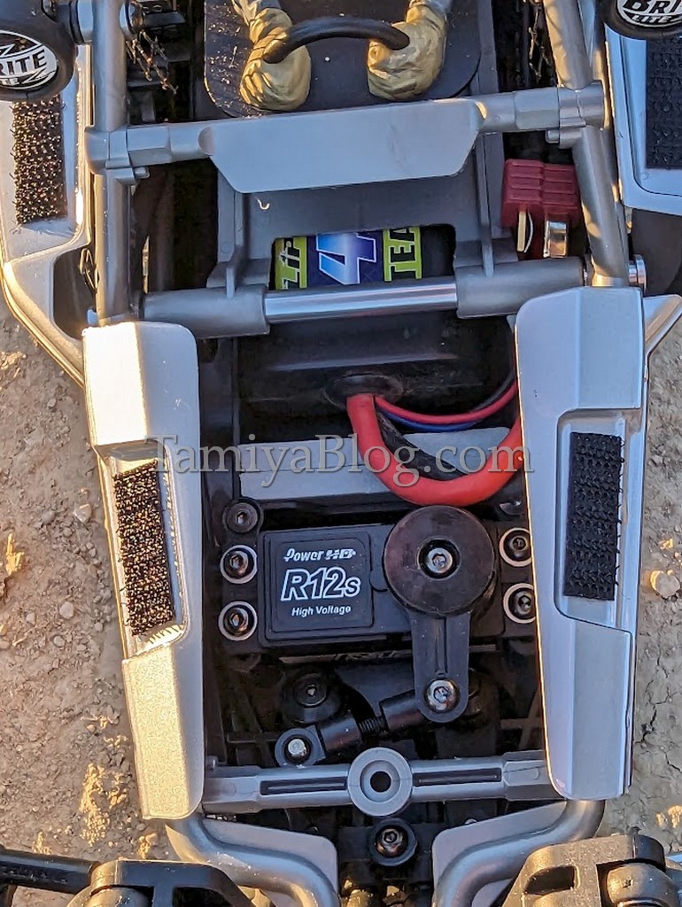 I would like to go into the construction a little more, as it is a completely new chassis platform. Even if you come across a few parts every now and then during construction that you also know from many other Tamiya kits. The BBX is the first model based on the new BB-01 chassis. And the kit is already very complete as standard. The BB-01 comes completely with ball bearings, which also includes the extremely play-free steering. CVDs and excellent shock absorbers, including TRF X-rings are already standard from the factory. Another small innovation is that Tamiya almost exclusively uses hex screws on the BBX. Tamiya also recommends using modern brushless motors for the BBX. We did that too and decided on a sensor-controlled 13.5T brushless drive.