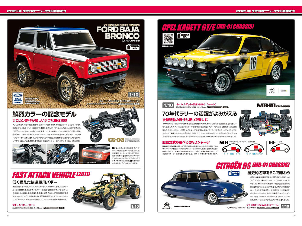 - A variety of attractive new items are available. Don’t miss the MB-01 chassis, of which new bodies are appearing one after another, including the CC-02 series with commemorative model color Baja
