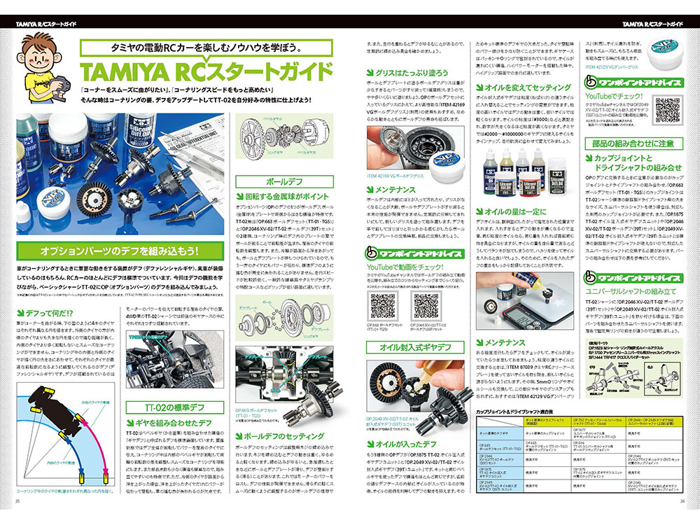 - “RC Start Guide” features updates to the differential, which is the key to cornering. An easy-to-understand explanation of the basic structure and maintenance methods of the differential based on the basic