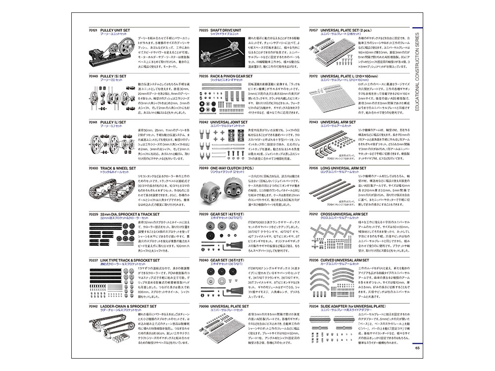 - This page features craft sets that can be easily assembled using a small number of parts, allowing you to learn about various mechanisms while having fun.