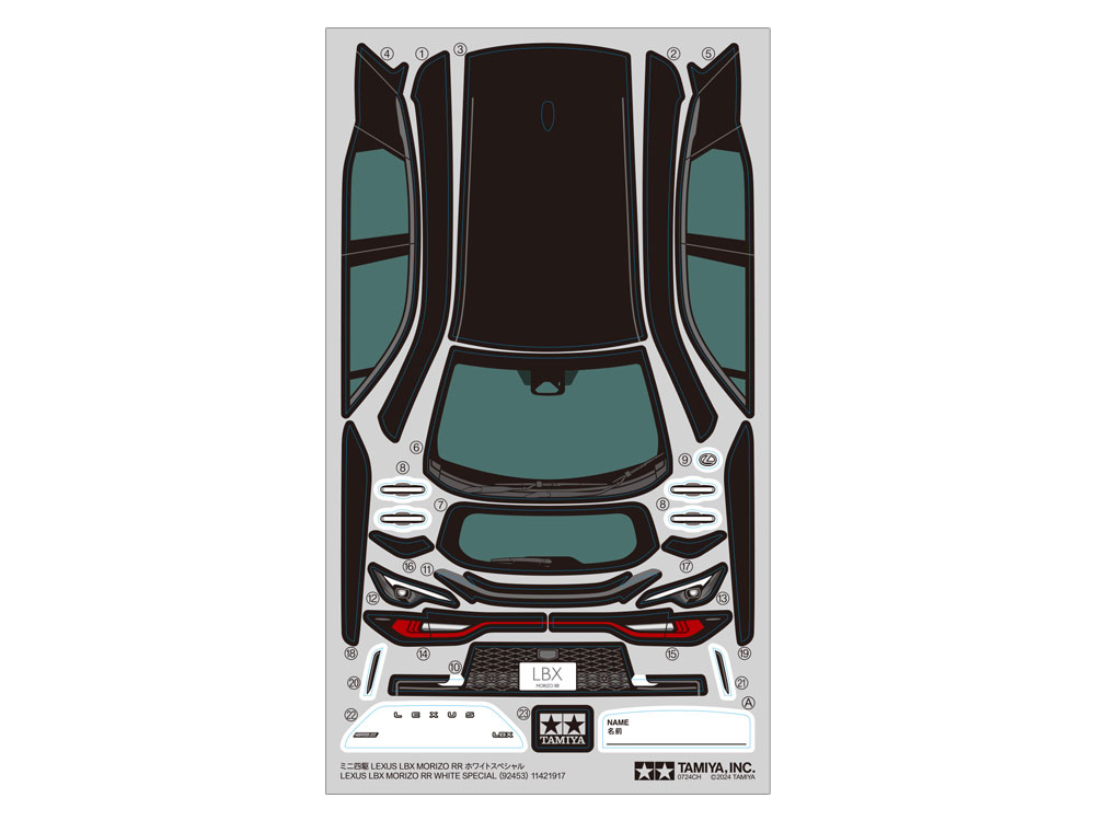 This is an assembly kit for a four-wheel drive racing car that allows you to enjoy high-performance driving. The LBX MORIZO RR, a high-performance model that enhances the driving performance of the LEXUS compact cross “LBX” and pursues sporty driving and driving pleasure, has been made into a Mini 4WD. The high-quality, dynamic style with a strong presence is reproduced with a rich atmosphere of the actual car. The blacked-out roof, front and rear lights, and the distinctive front grille called the “Unified Spindle Grill” are available as stickers. In addition, the chassis is equipped with a double shaft motor with excellent driving efficiency and is high-performance and easy to assemble, with a focus on aerodynamics. This is a noteworthy machine that scales down the powerful driving of the MORIZO RR. The body color is white. The stickers and packaging are also specially designed and different from the ” ITEM18661 Lexus LBX MORIZO RR (MA chassis) “.