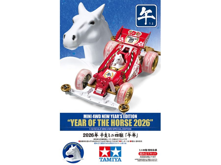 Couple of more upcoming Tamiya Mini 4WD models 95694 Mini 4WD New Year’s Edition “Year Of The Horse 2026” 95698 1/32 Mini 4WD Santa Claus (Red Racer)
