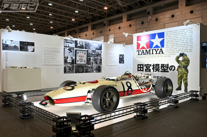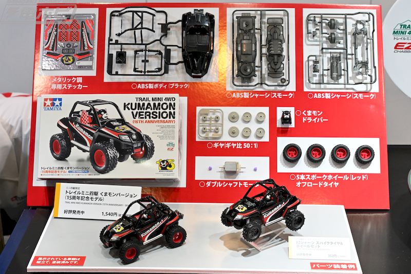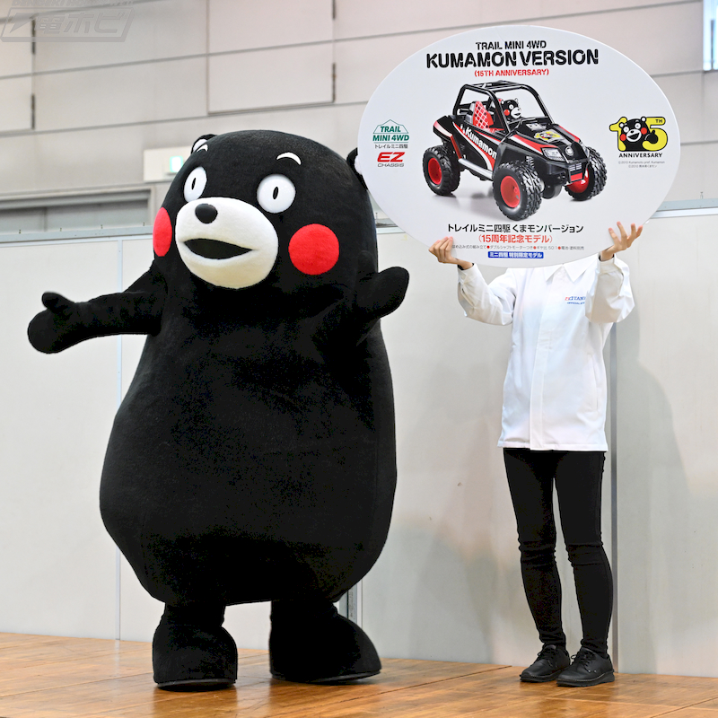 A memorial project for former Chairman Shunsaku Tamiya, an exhibition of real cars like F1 machines and military vehicles, a world championship match for electric RC cars and Mini 4WD, the 54th doll modification contest, an exhibition of masterpieces by plastic model enthusiasts, and even an appearance by Kumamon!