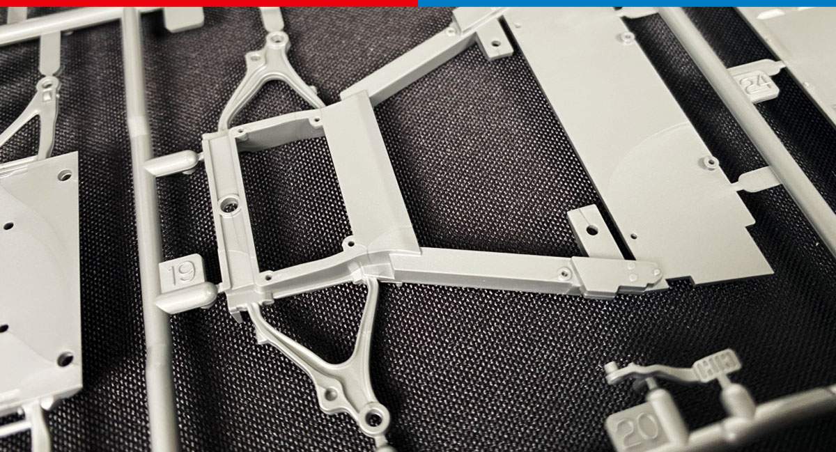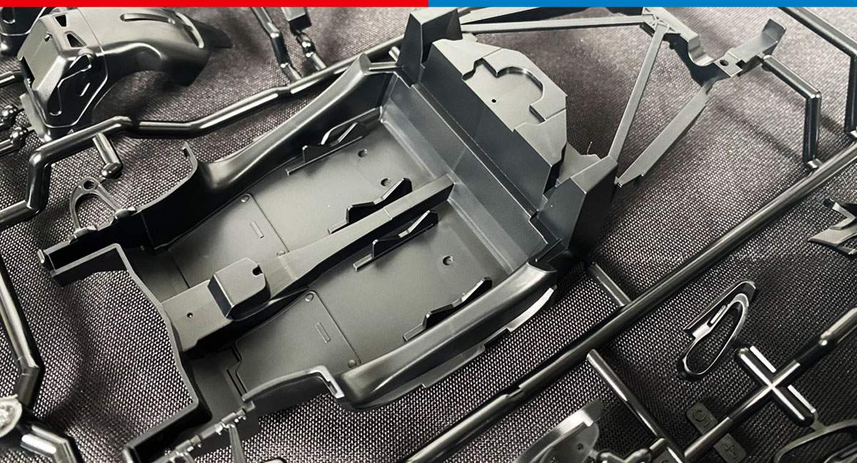 • 1/24 scale plastic model assembly kit. Length: 198mm, width: 91mm, height: 60mm.