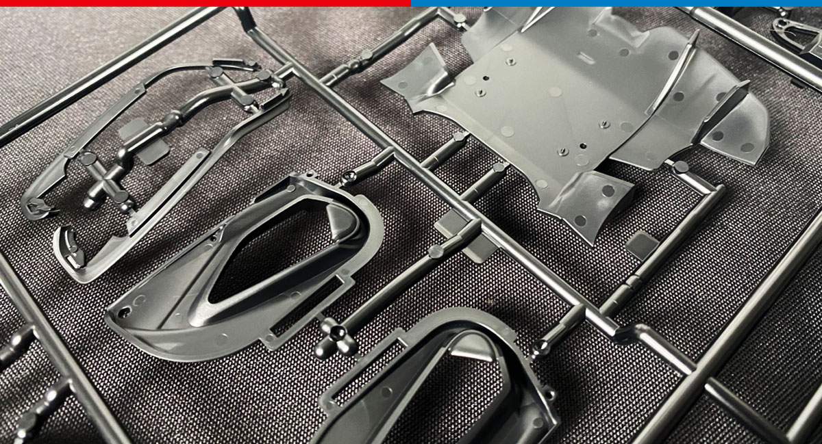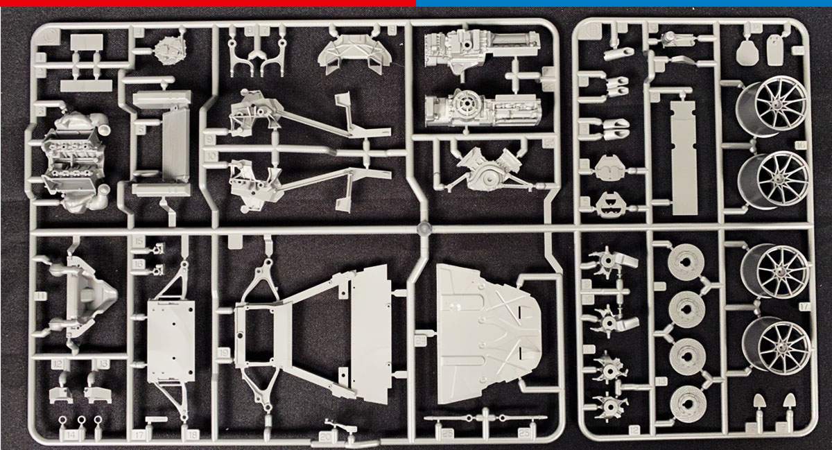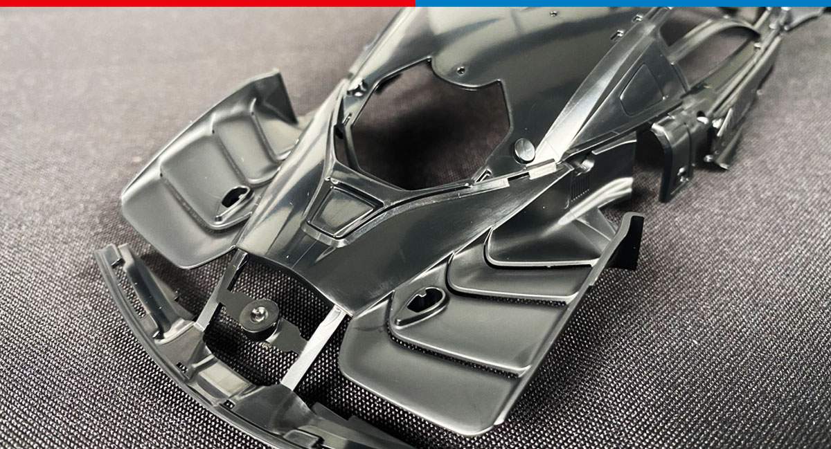 • The sleek aerodynamic body’s form is captured in style. Uniquely, it is composed of a single monocoque part onto which body panels are attached individually, allowing a highly realistic depiction of the car.