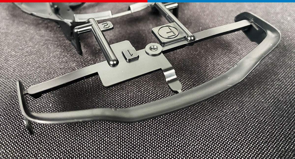 • Metal transfers recreate McLaren logos.