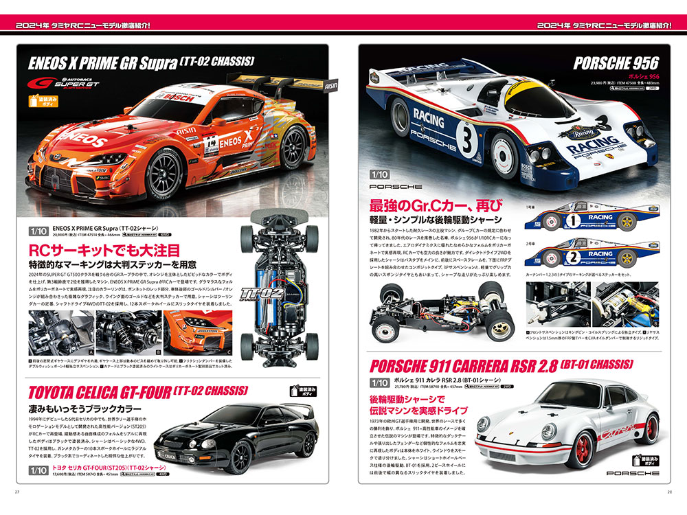 - New items in the on-road car section include a mix of old and new machines. Not to be missed is the famous Porsche 956, which features a lightweight and simple rear-wheel drive chassis.