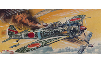 Tamiya model “Japanese Army complete fighter Hayabusa” original picture (1/50 Japanese masterpiece series) Picture: Shigeru Komatsuzaki Komatsuzaki exhibited a work depicting the brave figure of “Haya” at the 1st Army Art Exhibition in 1943. It is a subject that can be said to be the origin. 1964 Tamiya Kura Co. , Ltd.